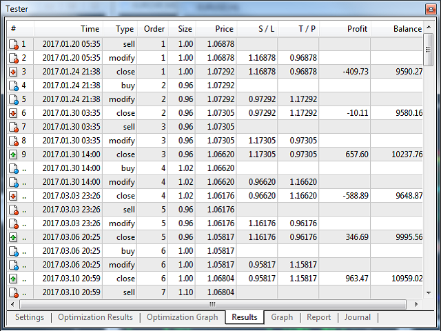 If a trend changes its direction to the opposite side, the EA closes an opened position ( CloseBySignal = true) and opens a new opposite position.