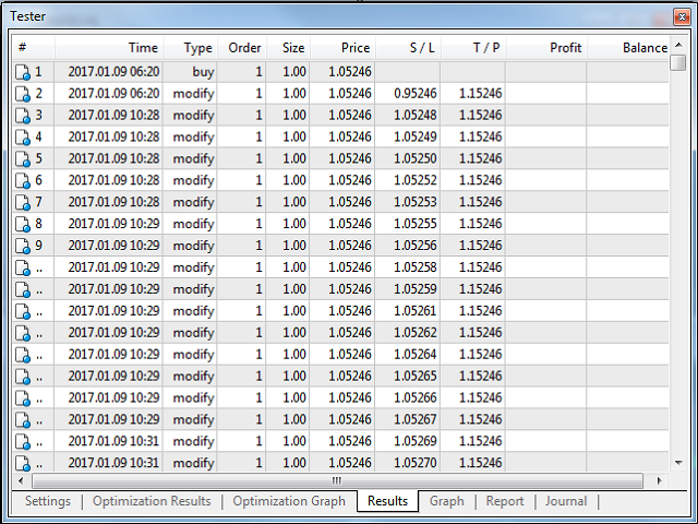 The main input parameters are A, B, C, D, and E , which can be any positive numbers. These are input parameters (weight coefficients) of the one layer neural network. The EA checks for a new trend and opens a position accordingly.