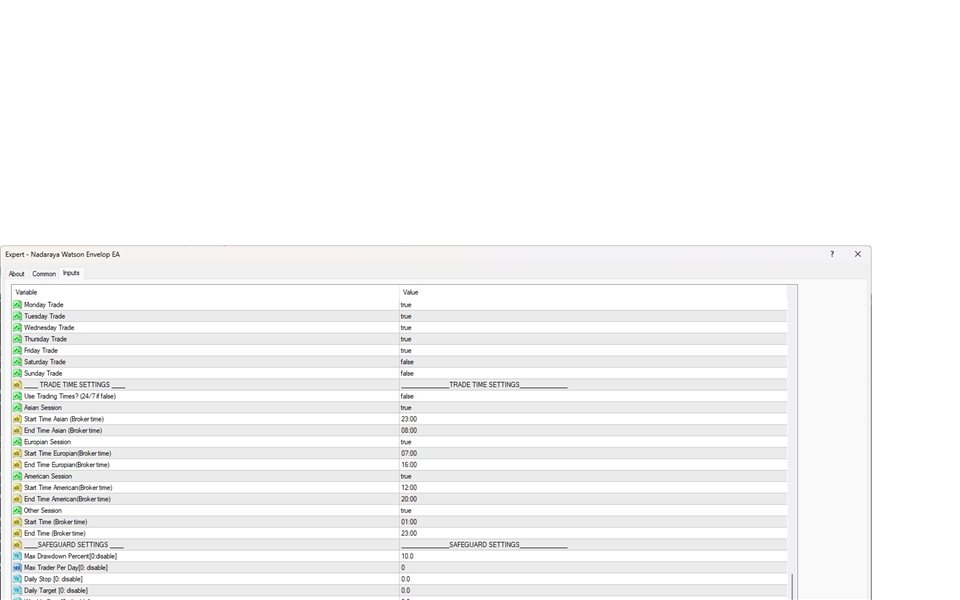 Safeguard Settings: The safeguard settings feature allows the expert advisor robot to automatically close out positions if certain conditions are met. For example, the robot may be programmed to close out all positions if the account balance falls below a certain level.
