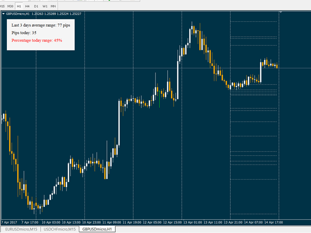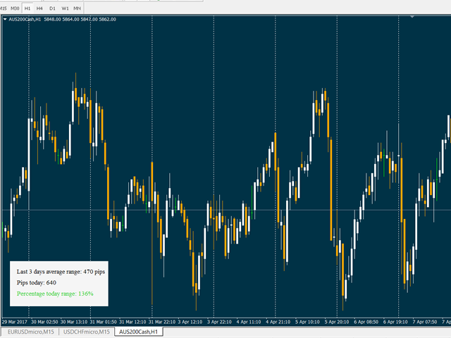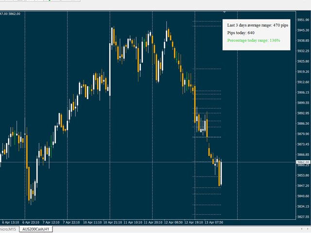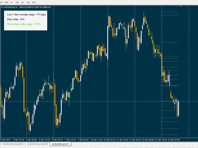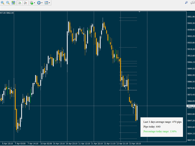 This indicator compares the pips of the current day with the average of pips made in the previous three days.