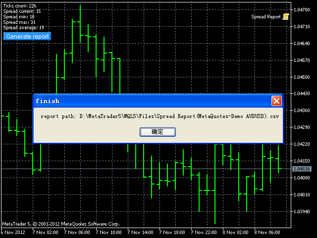 This script is intended to help users to get information about ticks and spreads (e.g. ticks count, minimum/maximum/average spread). It can export reports in the CSV format with this information.
