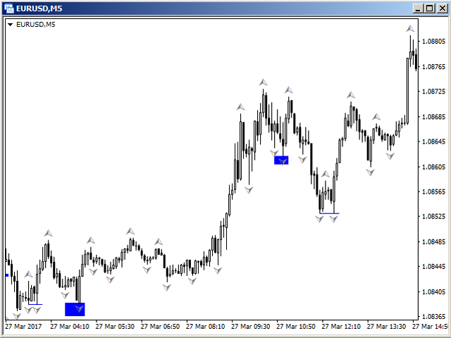 The indicator signals can be used for trading both rebounds from the support and resistance levels, and their breakout. This depends on the trading tactics selected by the trader.