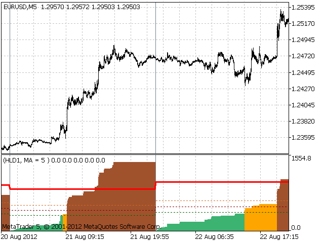The indicator displays the dynamics of forming the daily range in the form of a histogram, and the average daily range for a specified period.
