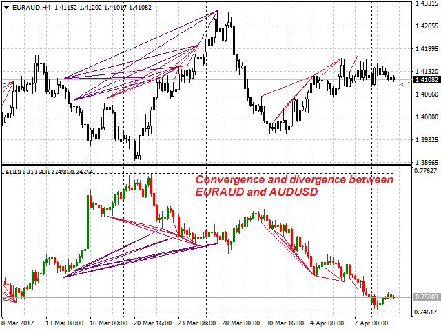 Multiple use of the indicator allows you to find convergences/divergences between the price of the main financial instrument and any other financial instruments simultaneously.