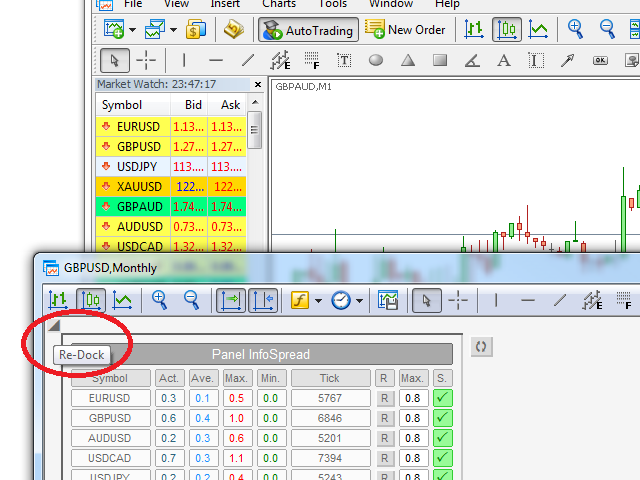 - You must open a new chart with any symbol to use the Panel Infospread.