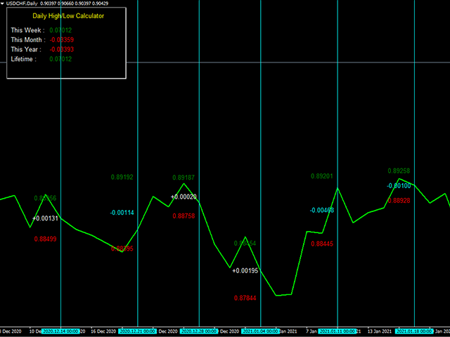 This indicator gives the highest and lowest information of the currency you have selected and the day you selected. It also shows the average. In this way, you can find out the profit / loss probability of your transactions for the same days.Reported:Average points per weekAverage points per yearLifetime average points