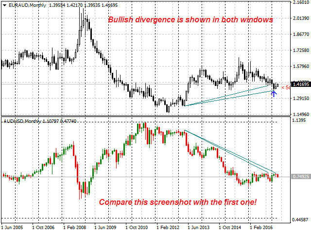 - Message: Signal,H1 - Bullish Divergence between EURAUD and AUDUSD - 2014.08.17 10:25:00.