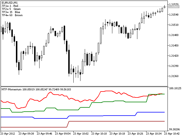 Multi TimeFrame indicator MTF-Momentum shows data from the 4 timeframes by your choice.