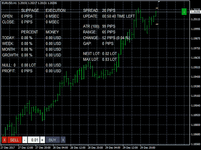 該圖表顯示有關訂單執行質量、收到的利潤和當前未平倉頭寸(訂單數量、手數和利潤)的信息。適合與任何經紀商合作,包括具有先進先出要求的美國經紀商 - 要求首先關閉先前打開的交易。
