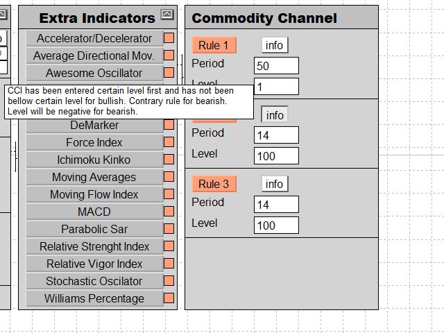 Step 1.- Select all the strategies and rules you want activated for bullish or bearish signal by a click of the buttons, or inside the inputs