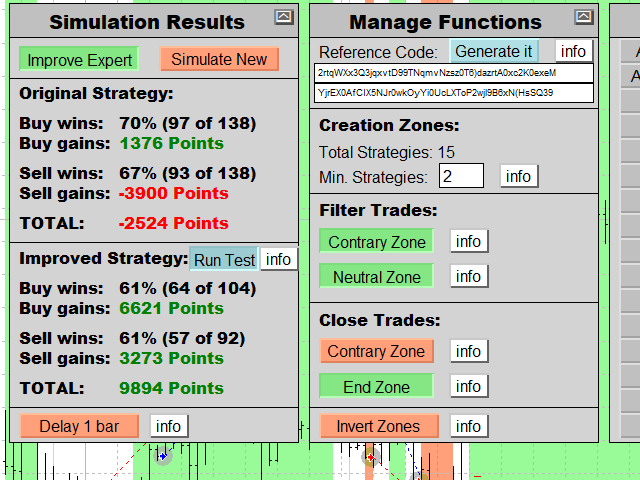 We are glad to introduce you to the tailor of the strategies and Ea. We have programmed this indicator to monitor the strategies you have selected. In other words, have you ever liked knowing what would happen if you chose “x” strategies? would you like to have the information of more than 50 strategies combinations to use it for further operations? If it so, you got the perfect tool. Strategy improver give you the answer. It provides you the information to filter your strategies to be the maximum profitable. StrategyImprover also allows you to create your perfect strategy.