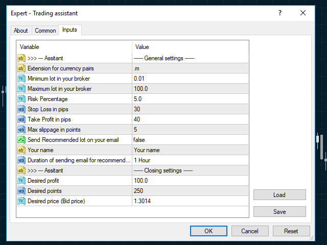 - Desired profit - Desired profit based on your account currency. When you reach to this amount, expert will close open positions on the current symbol.