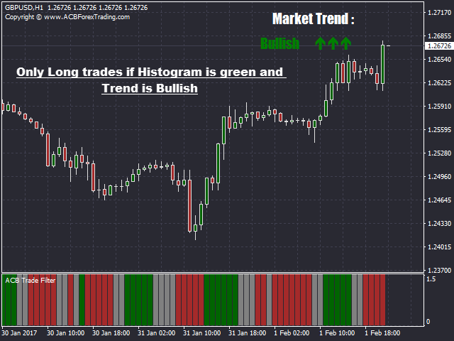 - Only Long Trades if Histogram is green and Trend is bullish .