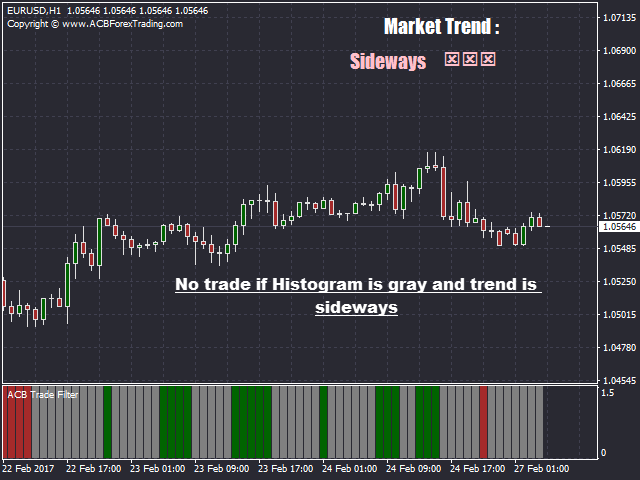- Avoid trading if the Histogram is gray or Trend is sideways .
