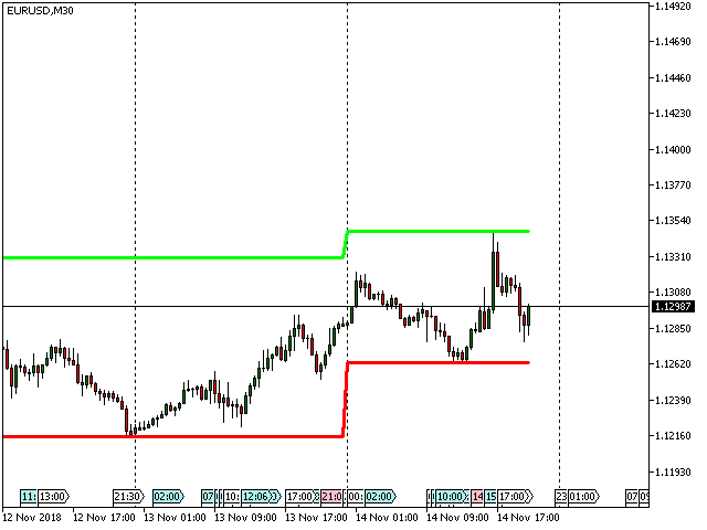 - TimeFrame - 选择绘制指标水平的时间段。默认情况下,日线图周期已设置。