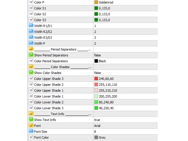 - Show Pivot Levels - true/false.