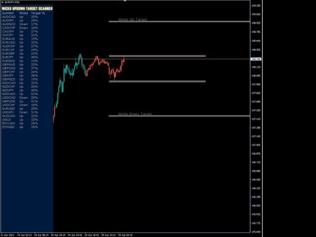 Remark: Wait for price to breakout and set your TP (Take Profit) using the Wicks Up Target Line or Wicks Down Target Line shown on the chart.