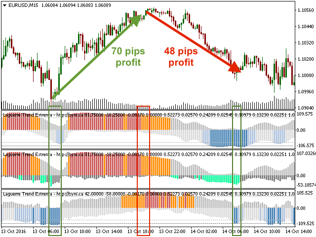 To make it simple, the indicator can show this by painting "dots" where you need to enter/exit (Draw maxima offset dots = True)