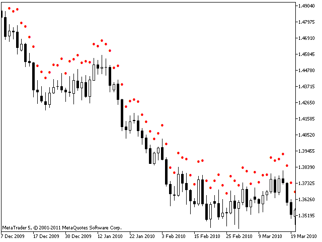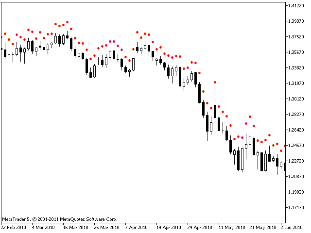 The problem is that if you enter a trade at any other point than the initial dot of the sequence, you may be placing the stop too close. Stop-entry plots show you the initial value for the stop for each bar. You can use them when you put on a trade, and decrease the value each day until you eventually hit a stop.