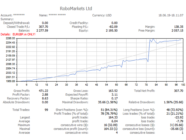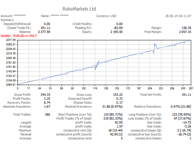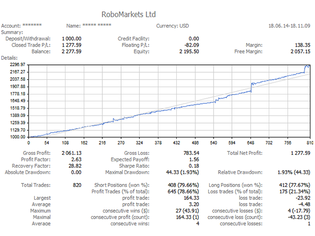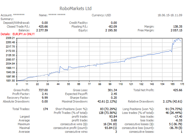 You can see the statistics of the advisor for different brokers on various instruments in the section Trading Signals for MetaTrader 5 .