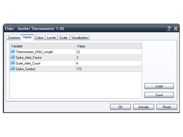 - Thermometer_EMA_Length (22) – The length of the moving average of the Market Temperature. The default 22, the average number of trading days in a month.