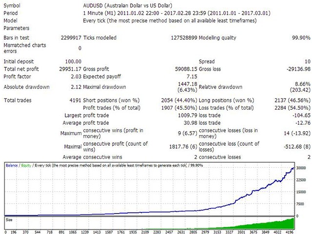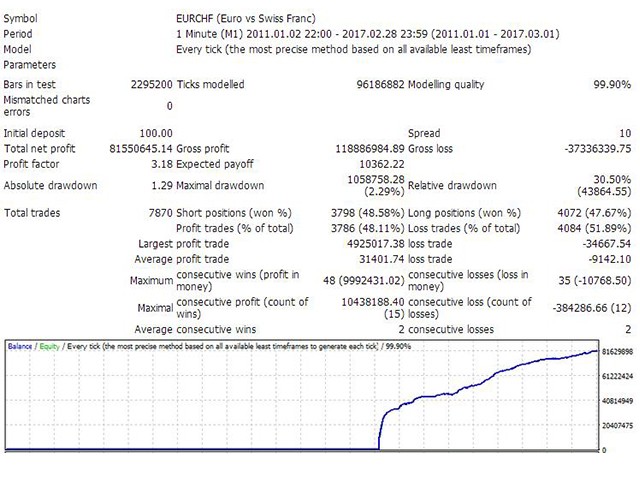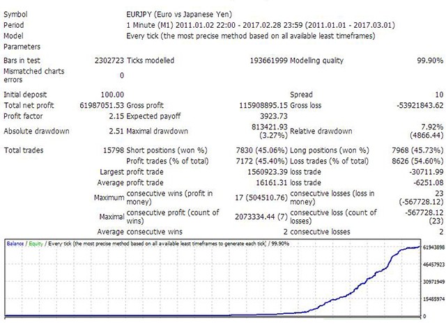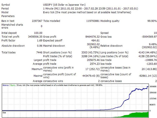 此EA是一个 高频交易系统 ,只在市场波动剧烈时进行交易。通过运用独特的技术指标,检测市场的短期波动,在价格形成突破时入场,并在几秒内抓住几个点迅速离场。每一个挂单都有内在止损,每一个已成交的单子有移动止损进行保护。