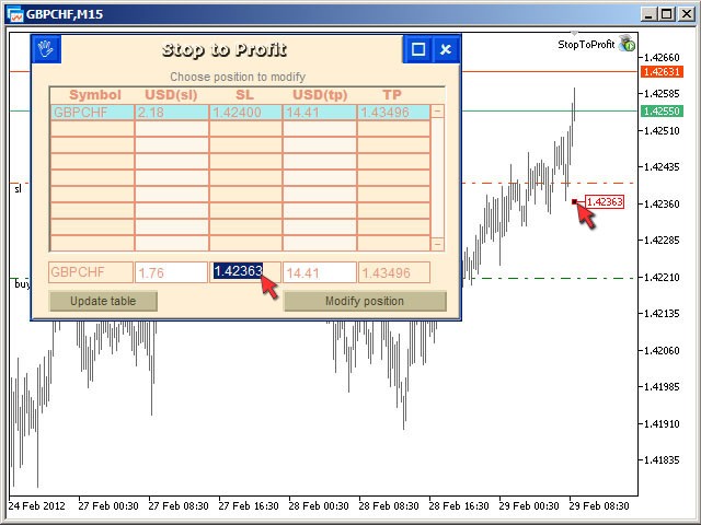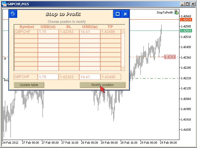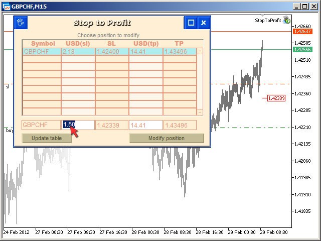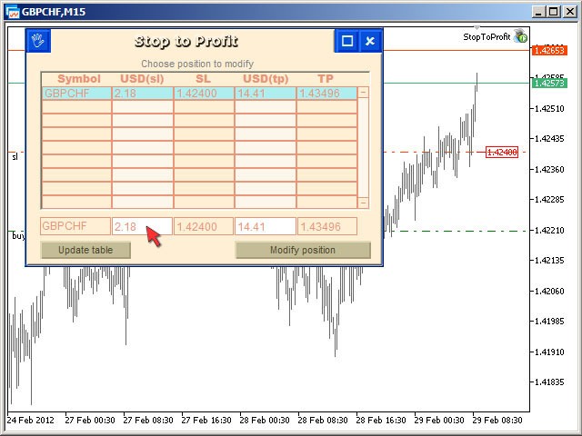 Эксперт для изменения уровней Stop Loss и Take Profit открытой позиции.