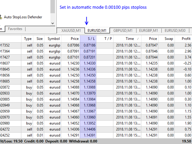 The Utilite automatically adds a stop loss to open and pending orders that have no stoploss set.