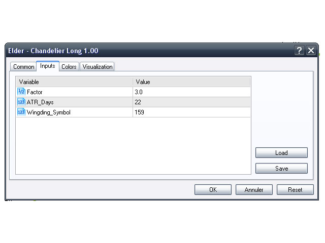 - Factor (3) – This is the factor for multiplying the ATR when computing the Chandelier, you may use fractions – this does not need to be an integer;