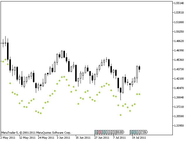 The problem is that if you enter a trade at any other point than the initial dot of the sequence, you may be placing the stop too close. Stop-entry plots show you the initial value for the stop for each bar. You can use them when you put on a trade, and increase the value each day until you eventually hit a stop.