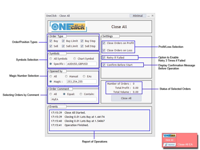 Confirmation : If the option enabled, EA will show a message box and will ask to confirm the closing of orders.