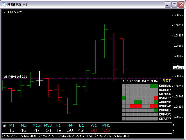 If a digital value of the RSI is between an UpLevel and a DnLevel then a Gray square will appear.