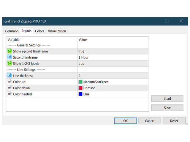 Real Trend Zigzag PRO shows the real trend of a market, u nlike the default Zigzag indicator. It calculates the trend in real time and shows green lines for upwards trends, red lines for downward trends and blue lines for no trends.