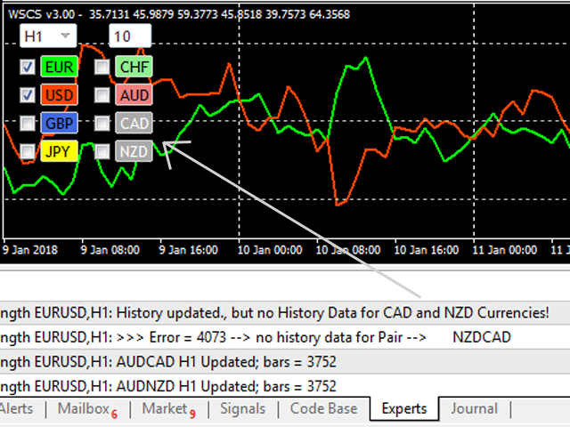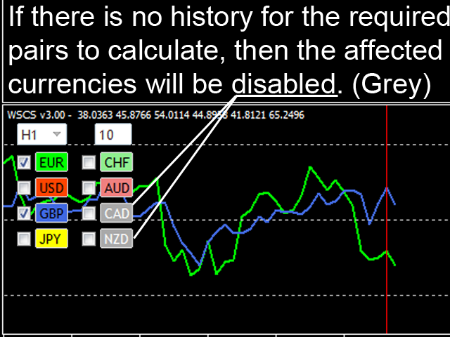 If that's the case, simply remove the indicator and after a minute or so apply the indicator again and it should be just fine.- If there is no history for some of the required pairs to calculate (or pair is not available), then the affected currencies will be disabled! (see the screenshots)