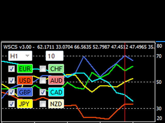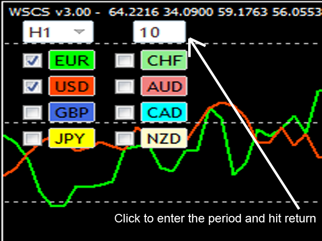 - Keep Selection on Chart Change: When the Chart is changed (Time Frame or Pair), then all current selected Currencies, Time Frame and Period of the Indicator are kept.