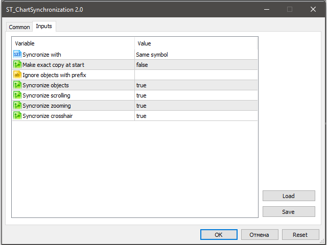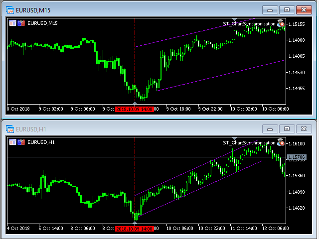 This utility ensures a real-time synchronization of multiple charts. Any event of a graphical object creation/modification/deletion, chart scrolling and zooming is copied from the current source chart to one or more receiving charts.