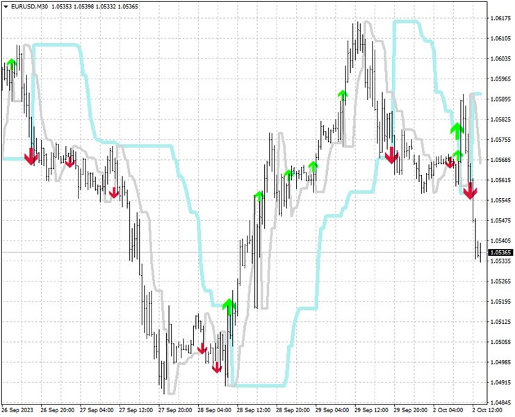 This indicator identifies the current trend, thus allowing the trader to capture a maximum of strong price movements with pending order. The indicator settings are very simple and its application is intuitive. The line serves as a strong support/resistance level depending on its location relative to the price. Individual dots of the indicator mark short-term resistance/support levels. Place pending orders to enter the market above or below (taking the spread into account) those values.