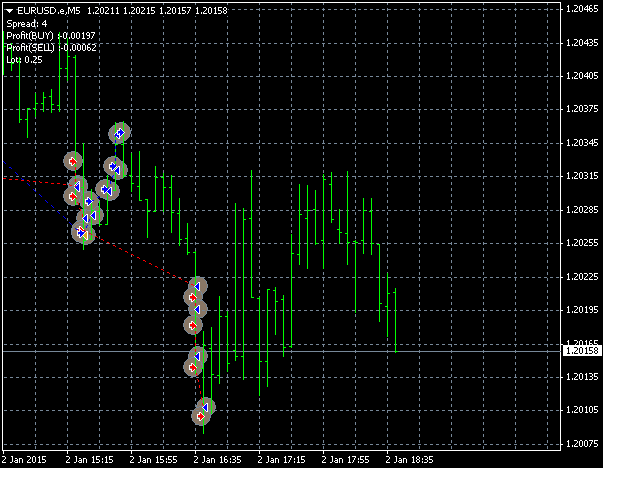Deal opening algorithm is based on the reverse system of stop-loss, that is, the orders are opened after the number of points specified in open_points from the current price. Recommended spread size <= 5.