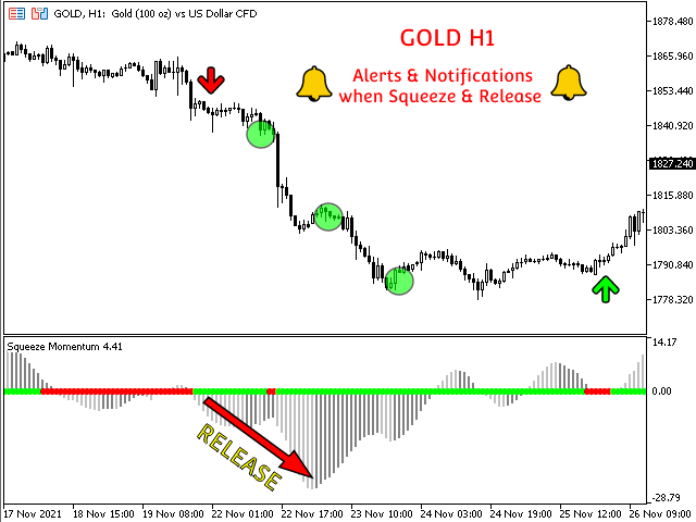 At the same time, TTM Squeeze Momentum MT4 provides a system of alerts and notifications on the mobile phone and on the MT4 Terminal when the market enters or leaves a consolidation period.