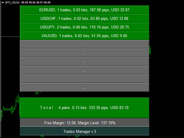 - Unlike other EAs , Trades Manager does not require tick price on the chart to work.