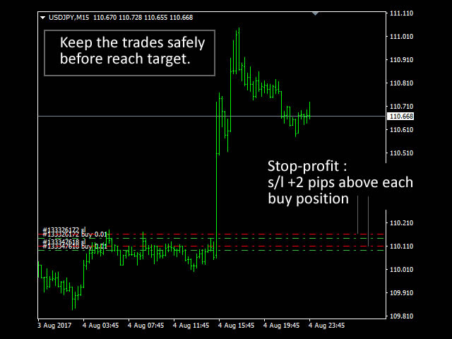 - Pips +s/l stop-profit - Enter pips for stop-profit for each order. Enter 0 to ignore. Default is 2 pips.