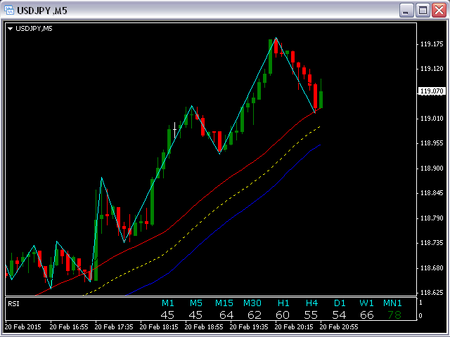 This indicator is calculating a ZigZag (Aqua line) which combine with Fibolopes together form a system signals for Open (Z crossing Fibolopes) a new position and Close (Z crossing Fibolopes in opposite direction) an existing position.