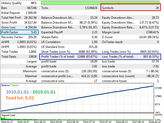 The EA uses economic news trading using low, medium and high news. The EA is set for each piece of news separately. Trading is conducted on 26 currency pairs and 3 timeframes from M5-M30. The EA uses trading on such indicators as CCI, Standard Deviation, Moving Average, Relative Strength Index, Momentum and MACD .