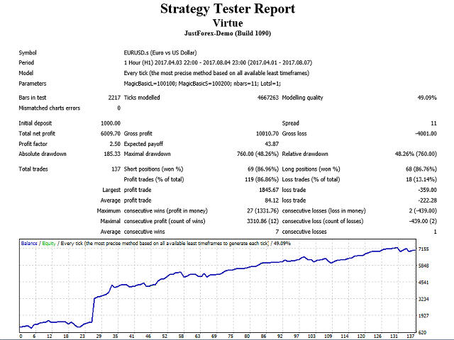 "Virtue" is a fully automated Long term Expert Advisor. It calculates market condition itself and decides to enter a position.