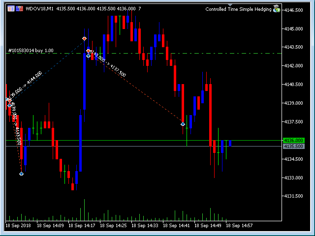 Tradicional hedging strategy, and you can set time to start, to do not start again and time to stop (Subject to market).