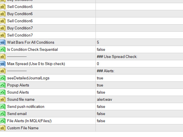- Inbuilt MT4 Indicators not supported. To use them please write your own wrapper indicator and create buffer values.