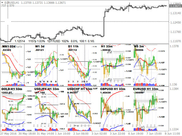 Charts have many features including unique statistical bands, rounded numbers, pivots, the elapsed time count, information about orders, change chart by clicking, saving and loading graphic objects and many others.