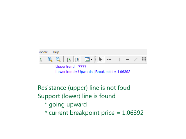 - Indicator shows break through price for both bullish and bearish trends (if found)