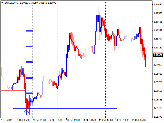 4) depending on how the price approached the level - touched it or break it, the indicator makes recommendations to buy for a reversal or sell to continue the movement after a retest.