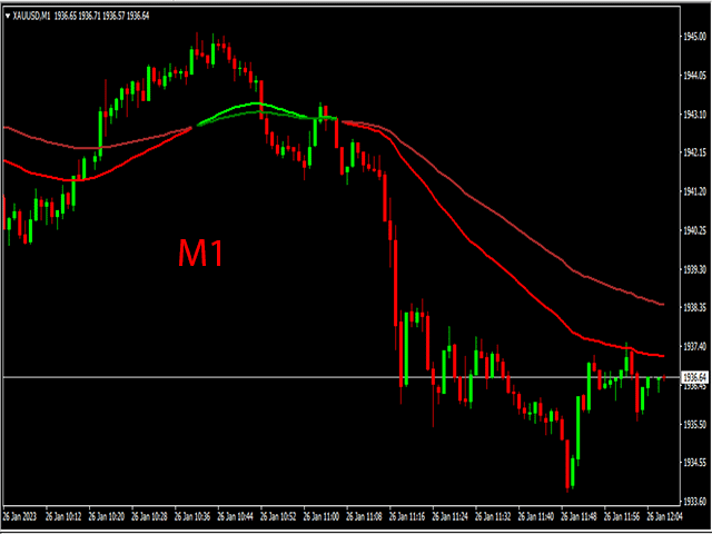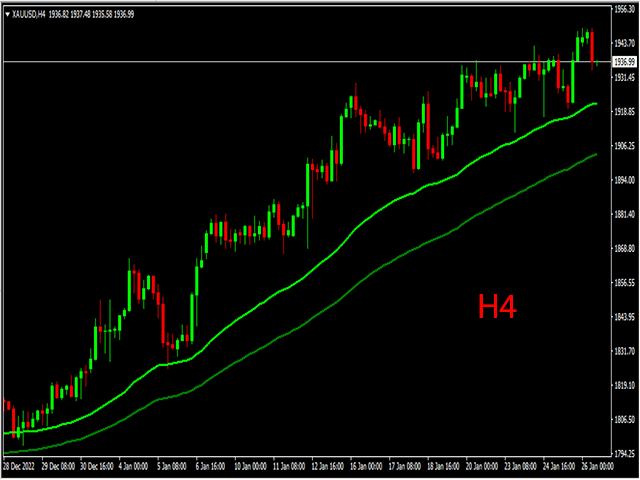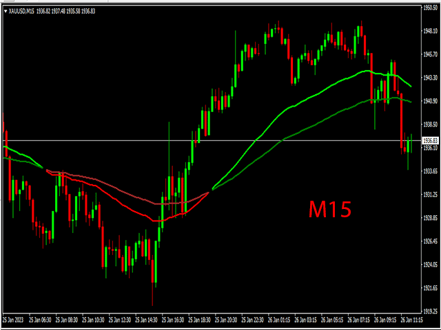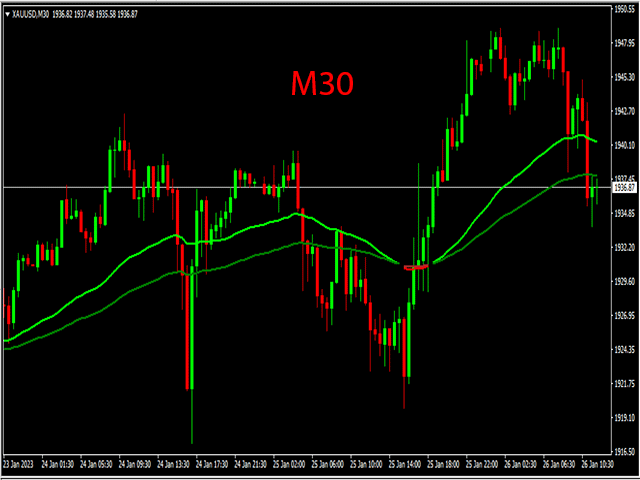 当 2 条 EMA 线变为绿色时,出现买入信号。当 2 条 EMA 线变为红色时,出现卖出信号。如何与之交易?一旦两条 EMA 信号线从红色变为绿色,就开始买入交易,现在趋势是积极的。一旦两条 EMA 信号线从绿色变为红色,就开始卖出交易,现在趋势是负面的。当图表上出现相反的交易信号时退出交易。